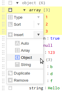 The JSON Editor supports shortcut keys for all available actions. The editor can be used by just a keyboard. The following short cut keys are available: